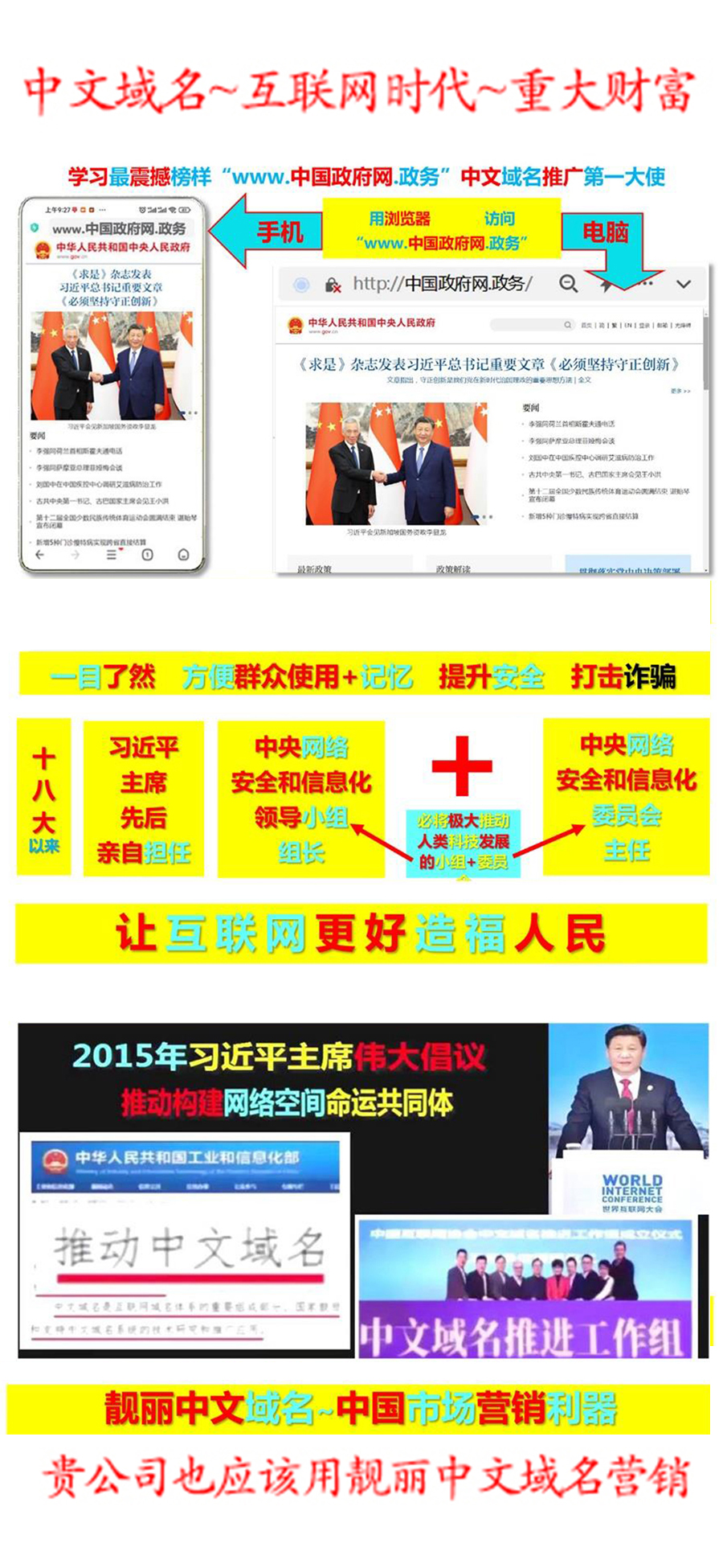 热烈庆祝习近平主正式提出 网络空间命运共同体的伟大理念 10周年 点赞网络空间命运共同体对网络空间的 划时代伟大贡献 演示了:由我公司多个中文域名链接到贵盛会网站的通畅性 演示了:由我公司多个中文域名链接到贵盛会网站的通畅性 不是病毒++++只是友情链接+++中文域名直达 一个网站可用多个域名+中文+英文 **************************************************